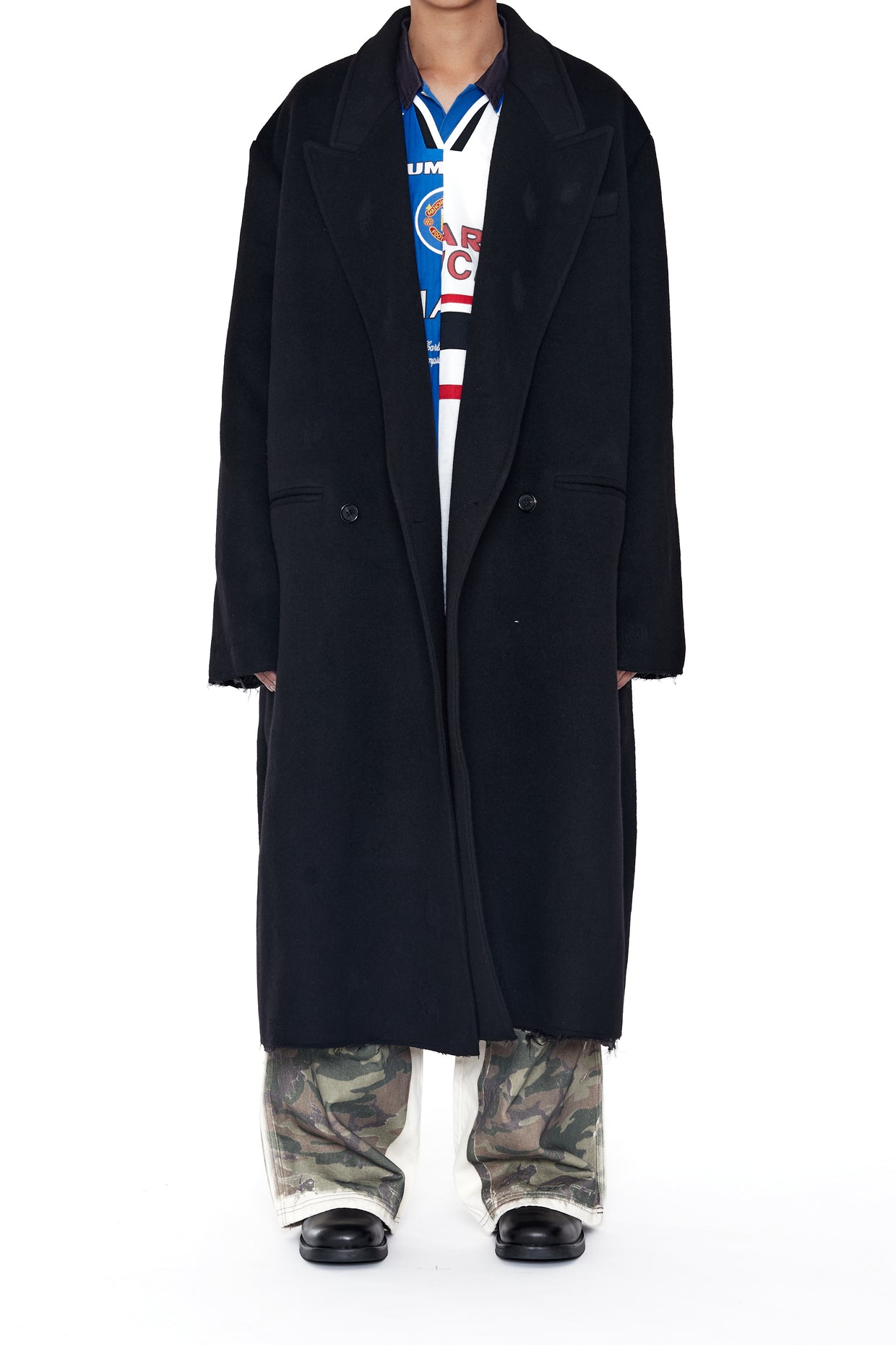 BLACK WOOL CUT OUT DISTRESSED DORIAN COAT