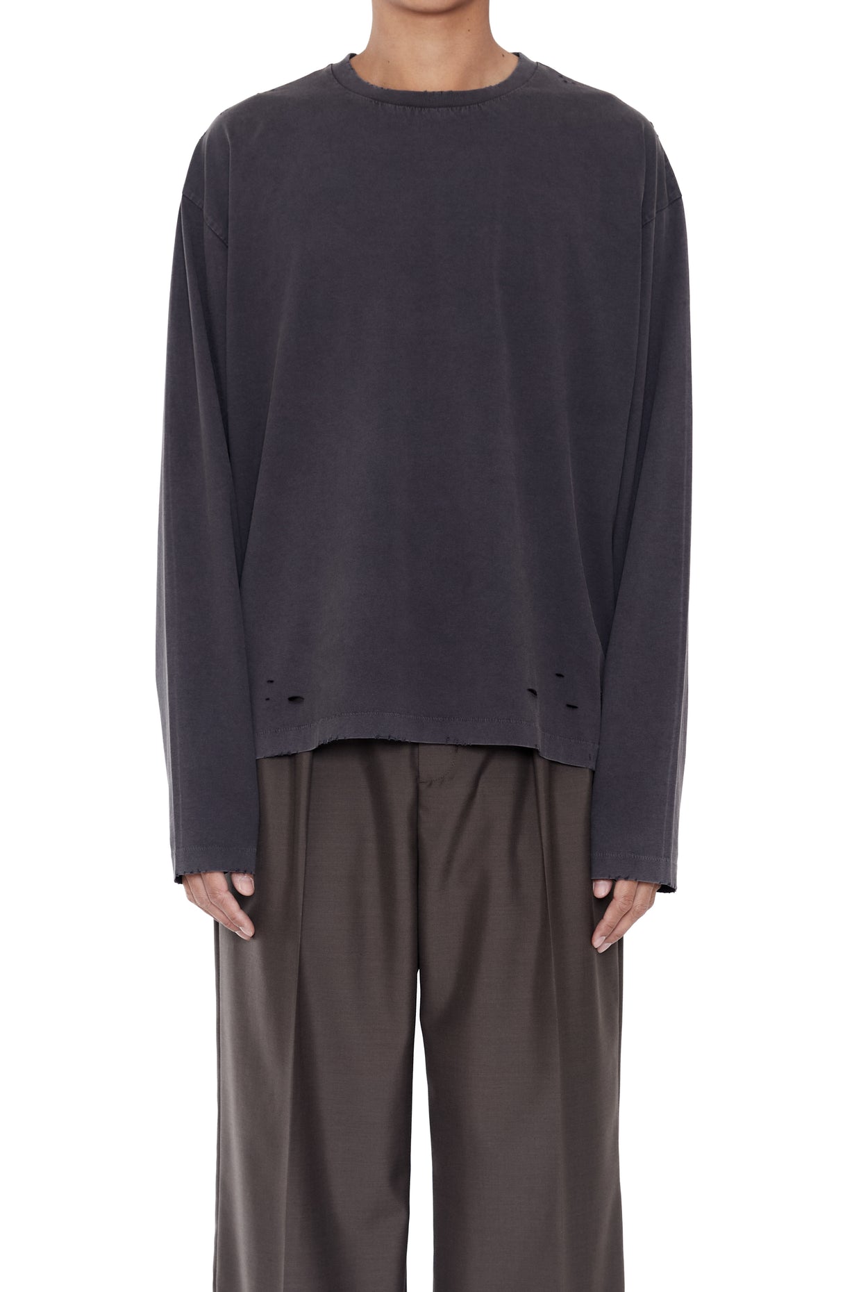 FADED GREY AGING DAMAGED LONG SLEEVE T-SHIRT