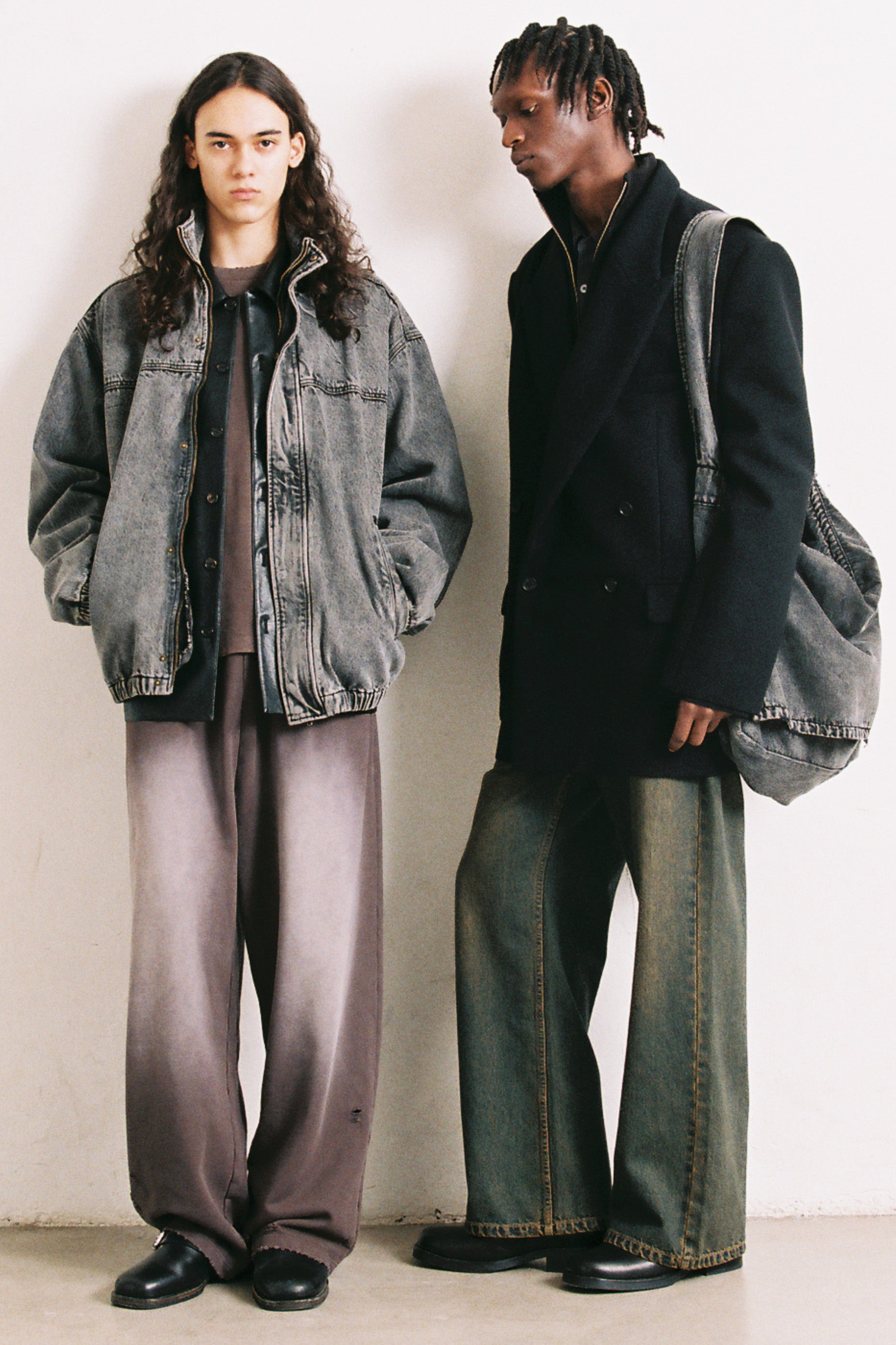 Oversized denim tour jacket in black acid wash.